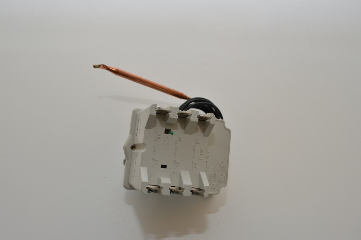 Aquastat de sécurité (à réarmement) pour alimentation électrique (3 phases) de la résistance de chauffage.